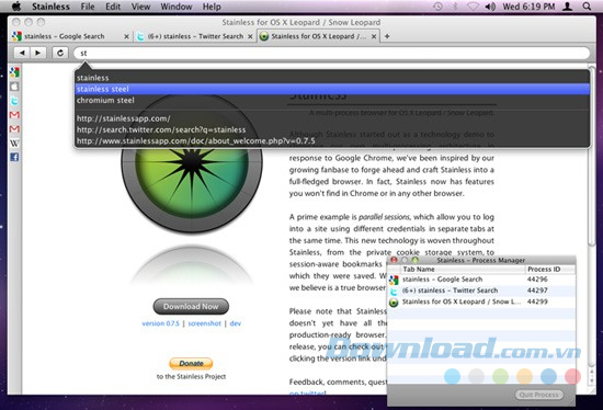 Stainless có một giao diện đáng chú ý, được cho là một trong những sản phẩm tốt nhất trong ngành. Trong số các trình duyệt web đặc biệt khác, Stainless được tạo ra như là một đối thủ trực tiếp đối đầu với Chrome. Trình duyệt dựa trên webKit như Google Chrome và Safari, còn Stainless cũng được chào hàng như Google Chrome dành cho Mac. Một trong những tính năng ấn tượng nhất của nó là khả năng đăng nhập vào tài khoản người dùng riêng trên các tab khác nhau. Điều này có nghĩa là bạn có thể dễ dàng thao tác giữa các tài khoản thư cá nhân và tài khoản doanh nghiệp của mình cùng một lúc mà không phải đăng xuất. Tải Stainless cho Mac