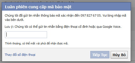 Sau khi nhận được mã số qua SMS, bạn hãy điền mã số nhận được vào cửa sổ mới hiện ra và nhấn ‘Tiếp tục’.