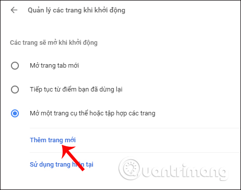 Tiếp đến tích chọn vào Mở một trang cụ thể hoặc tập hợp các trang rồi nhấn vào Thêm trang mới.