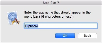 Đặt tên cho ứng dụng Bước 3: Chọn tên sẽ hiển thị trên thanh menu. Để tránh nhầm lẫn, hãy chọn tên mà bạn đã dùng ở bước trước đó.
