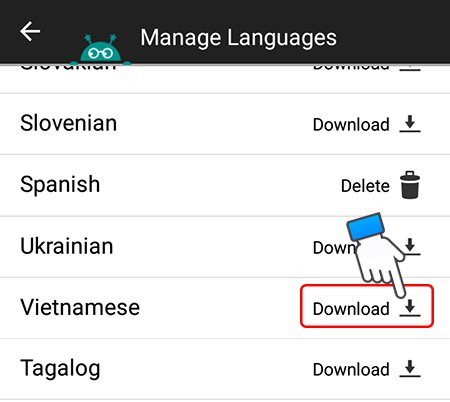 – Đầu tiên, bạn cần tải về ngôn ngữ của văn bản mà bạn đang muốn chuyển, nhấn chọn mục DOWNLOAD YOUR LANGUAGE để tải.