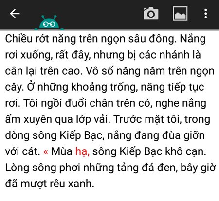 Với việc sử dụng một ứng dụng miễn phí có tên là Text Fairy trên điện thoại Android sẽ giúp bạn chuyển ảnh thành văn bản một cách nhanh chóng, vô cùng đơn giản và rất chính xác. Nghĩa là chỉ cần bạn dùng camera trên điện thoại chụp lại hình ảnh của đoạn văn bản trên báo chí, sách vở… sau đó ứng dụng này sẽ nhận dạng chữ viết, đặc biệt là có hỗ trợ tiếng Việt và hơn 50 ngôn ngữ khác trên thế giới.