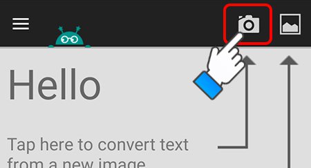 – Quay lại giao diện chính của Text Fairy, chọn biểu tượng Camera để chụp một ảnh mới và chuyển thành văn bản.