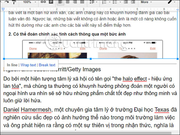 Ngay sau đó hình ảnh sẽ được mở trên Google Docs, với bên trên là hình ảnh gốc chứa nội dung văn bản và bên dưới là nội dung đã được trích thành nội dung văn bản.