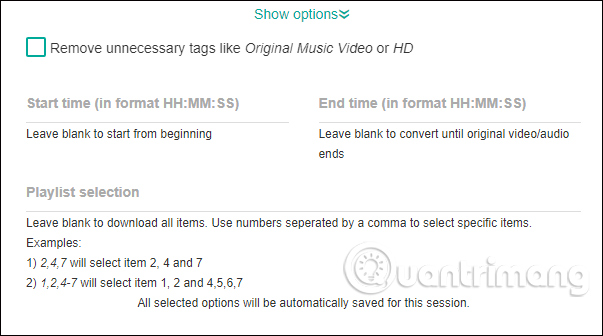Để mở rộng thêm các tùy chọn nâng cao khác khi tải video đặc biệt tải playlist, chúng ta tích chọn vào Show options.