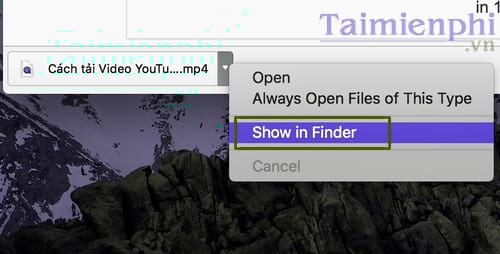 Bước 4: Sau khi tải video Youtube trên Macbook hoàn tất, các bạn nhấn đúp 2 con trỏ chuột vào file vừa tải về chọn Show in Finder để thấy file video tải về nằm ở thư mục nào. Nhấp đúp chuột để chạy và xem video đó trên Macbook.