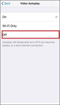 Bước 2: Chuyển sang giao diện mới, bạn kéo xuống dưới chọn mục Video Autoplay, phát video tự động. Theo mặc định trên hệ thống iOS 11, tùy chọn Video Autoplay sẽ được bật ở chế độ On. Bây giờ bạn chỉ cần chuyển sang chế độ Off.