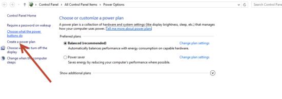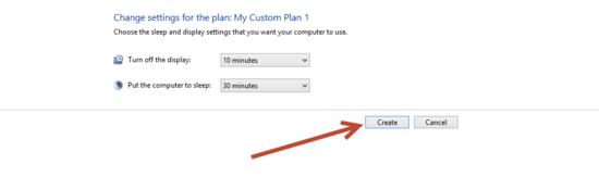 vào liên kết ‘Ceate a power plan’ ở phía bên trái, chọn một power plan để làm