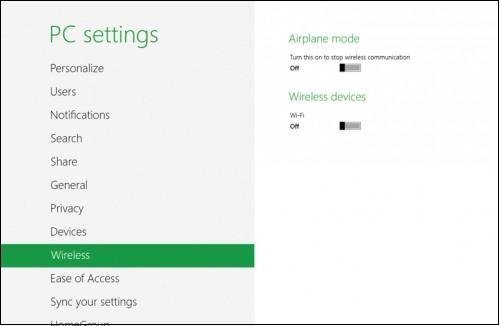 ‘Wireless’ rồi chuyển ‘Wi-Fi’ sang ‘Off’.