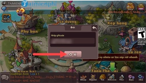 Bước 5: Và cuối cùng bạn nhập mã gifcode iGà nhận được khi nãy vào rồi xác nhân OK để nhận các item từ code iGà nhé.