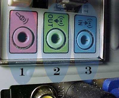 Jack cắm loa hoặc tai nghe ở đây là jack số 2 Tương tự như đối với laptop, các bạn cắm jack tai nghe hoặc loa vào lỗ jack có biểu tượng Out (thông thường nó có màu xanh lá cây), còn jack màu hồng là jack của Microphone.