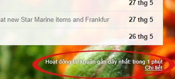 Khoảng hơn 1 năm trước, Google đã cung cấp thêm tính năng cảnh báo về những hành động khác lạ trong tài khoản đến người dùng. Do vậy, các bạn có thể kiểm tra các thao tác xảy ra gần đây nhất, chức năng này sẽ hiển thị đầy đủ tác vụ trong 10 lần đăng nhập mới nhất. Và dựa vào vị trí địa lý, địa chỉ IP cũng như thời gian truy cập, người sử dùng sẽ biết được chuyện gì đang xảy ra. Để xem được, bạn kéo chuột xuống cuối cùng màn hình, nhấp vào Chi tiết/Details như hình dưới: