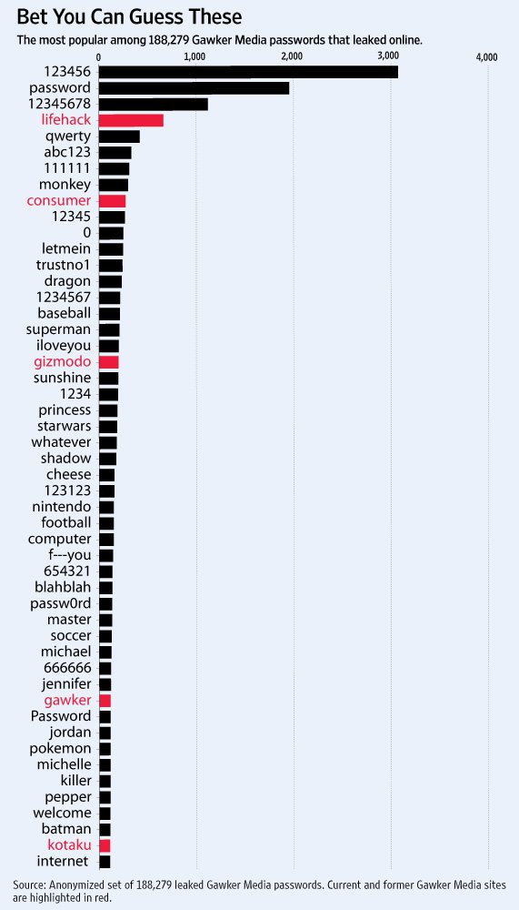Đây là yếu tố đầu tiên quyết định đến sự an toàn của tài khoản đối với mỗi người dùng. Và cũng thật bất ngờ khi rất rất nhiều người đã, đang và vẫn sử dụng chuỗi 123456 là mật khẩu của họ, tiếp theo sau là password.