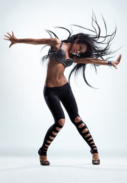 Tìm một bức ảnh gốc, ở đây là hình ảnh một vũ công đang tạo dáng trong phòng thu.