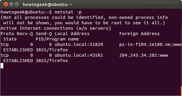 Sử dụng câu lệnh netstat –p để xem các chương trình đi kèm với các socket mở.