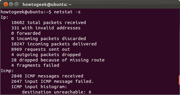 Xem các thống kê chi tiết cho tất cả các cổng bằng câu lệnh netstat –s.