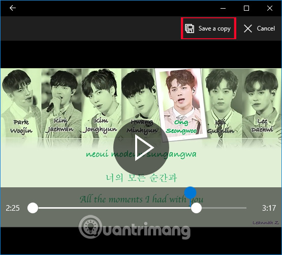 Khi đã chọn được đoạn video muốn cắt, bạn nhấp chuột vào nút Save a copy ở góc phải bên trên.