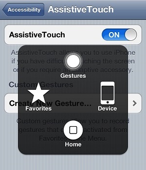 Nếu đang dùng điện thoại iPhone chạy nền tảng iOS 5 trở lên, bạn sẽ có thể dùng tính năng AssistiveTouch tích hợp sẵn trong hệ điều hành. Chỉ cần vào phần Settings -> General -> Accessibility và kéo xuống để bật tính năng AssistiveTouch này lên. Khi đó, bạn sẽ thấy một nút màu xám nhỏ “nổi’ trên màn hình. Nhấn lên nút này sẽ xuất hiện cửa sổ gồm các nút tính năng giả lập mặc định. Trong đó, nút Home để thay cho nút Home vật lý trên điện thoại; nút Device cung cấp cho bạn các tùy chọn để khóa xoay màn hình, tăng giảm âm lượng, tắt tiếng,… nút Gestures cho phép bạn thực hiện các thao tác cử chỉ với các ngón tay và cuối cùng là nút Favorites để tạo và lưu các thao tác mà bạn hay dùng