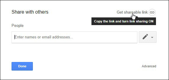 Lấy link để chia sẻ Bước 4: Click vào Advanced, bỏ chọn Notify people vì bạn sẽ không muốn họ nhận được email cho tập tin được chia sẻ mà chỉ muốn gửi link để mở tập tin này. Click OK để lưu thay đổi.