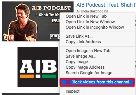 B3: Nhấn chuột phải vào một trong những video của kênh đó, chọn “Block Videos from this Channel“.