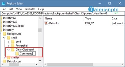 Bước 3: Tại thư mục Shell cũng ta tạo thêm một Folder con bằng cách click vào khoảng trống chọn New Key và đặt tên là Clear Clipboard .