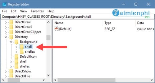 Bước 2: Sau khi truy cập được vào Registry Editor chúng ta tiến hành truy cập thư mục theo đường dẫn HKEY_CLASSES_ROOT > Directory > Background > Shell .